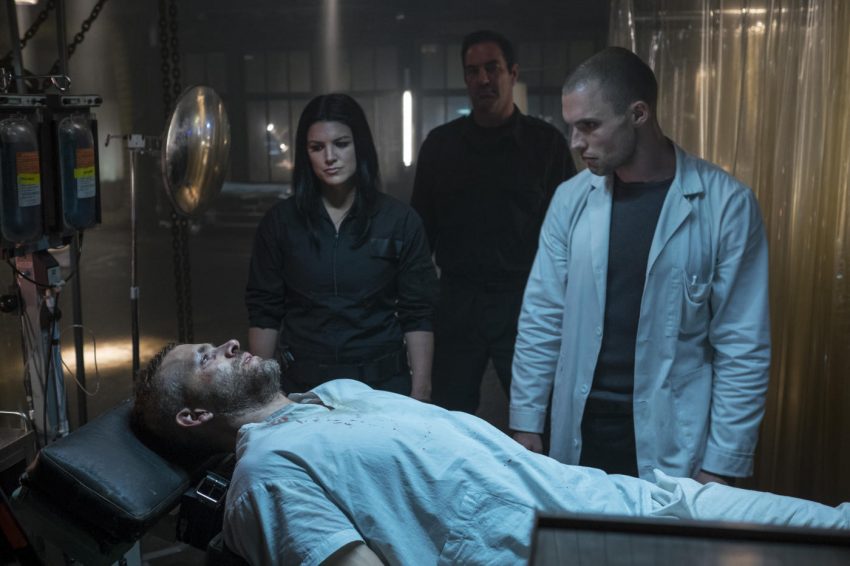 Eines kann man DEADPOOL sicherlich nicht vorwerfen: dass die Macher zu wenig auf sich aufmerksam gemacht haben. Aus marketingtechnischen Gründen ist der Film ein wahrer Meilenstein und unzählige Webseiten haben den Versuch unternommen das komplette Material zu sammeln (hier ein → Beitrag von „Wired“). Genauso MARVEL-untypisch beginnt auch der Film. Mitten in einer rasanten Verfolgungsjagd erklärt Deadpool (Ryan Reynolds) dem Zuschauer, wer er ist und was er da gerade macht. In einer Rückblende erklärt Wade Wilson, so Deadpools bürgerlicher Name, wie er als ehemaliges Ex-Specials-Forces-Mitglied sich mit Söldnerjobs über Wasser hält. Sein bester Freund Weasel (T.J. Miller) hat in seiner Bar, die zeitgleich ein Umschlagplatz für Söldner ist, einen sogenannten „Deadpool“ eröffnet, wo man auf den nächsten toten Söldner wetten kann. Dort trifft Wade schließlich auf die Escort-Dame Vanessa (Morena Baccarin), in die er sich verliebt und die er auch heiraten möchte. Alles könnte so schön sein, da bekommt Wade die Diagnose unheilbar an Krebs erkrankt zu sein. Um seiner Freundin den Anblick seiner Krankheit zu ersparen, verlässt er sie. In Weasels Bar kommt er vorrübergehend unter. Dort trifft er auf einen zwielichtigen Mittelmann, der ihm Heilung verspricht. Von dort geht’s direkt in ein geheimes Forschungslabor, das von dem übermenschlich starken Arzt Francis (Ed Skrein) geleitet wird, der Wilsons Mutantengene aktivieren möchte. Dies gelingt. Wilson entwickelt besondere Selbstheilungskräfte, die zwar den Krebs besiegen, aber auch sein Aussehen entstellen. Zudem kommt heraus, dass Francis seine Patienten als hochentwickelte Sklaven an den Höchstbietenden verkaufen möchte. Wade gelingt es zu flüchten, bevor es dazu kommt. Aufgrund seines Aussehens traut er sich aber nicht wieder zurück zu Vanessa. Er gibt sich den Namen Deadpool und verfolgt fortan Francis und seine Hintermänner. Zeitgleich versuchen die X-Men Colossus (Stimme von Stefan Kapicic) und Negasonic Teenage Warhead (Brianna Hildebrand) Deadpool zu überzeugen, dass er sich den X-Men anschließt.