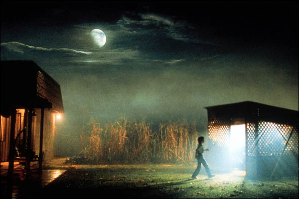 Denkt man an Außerirdische im Film fallen einem kleine grüne Männchen, schleimige Monster oder gigantische Stahlroboter ein. Alle haben eines gemeinsam: Sie sind gekommen um die Erde zu vernichten. Doch es gibt auch die Filme über friedliche Außerirdische und zu diesen zählt ohne Zweifel E.T. Der landet zusammen mit seinen Artgenossen in einem Wald in Kalifornien. Als plötzlich Regierungsbeamte auftauchen, müssen die Außerirdischen überstürzt fliehen, doch einer ihrer Gefährten schafft es nicht rechtzeitig zurück zum Schiff. Der verängstigte Alien sucht Unterschlupf in einem Schuppen. Dort findet ihn der zehnjährige Elliott (Henry Thomas) und lockt ihn ins Haus. Kurze Zeit später stellt er E.T. auch seiner Schwester Gertie (Drew Barrymore) und Bruder Michael (Robert MacNaughton) vor. Ihrer Mutter (Dee Wallace) gegenüber verheimlichen sie den ungewöhnlichen Hausgast. Nachdem Gertie E.T. das Sprechen beibringt, äußert dieser sein Heimweh und möchte „nach Hause telefonieren“. Die Kinder versuchen dem Außerirdischen dies zu ermöglichen, doch die Regierungsbeamten haben inzwischen herausgefunden, wo sich E.T. versteckt hält und möchten ihn zu Forschungszwecken einfangen.