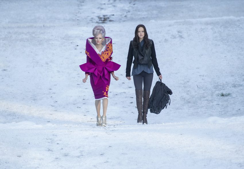 Die Hungerspiele sind längst in der modernen Popkultur und auch im politischen Diskurs angekommen. US-Talker Stephen Colbert vergleicht die Gefallenen seit geraumer Zeit mit ausgeschiedenen Präsidentschaftskandidaten (→ Stanley Tucci beschwerte sich kürzlich höchstpersönlich, da Colbert bei seinen Monologen den Panem-Talker Ceasar Flickerman zum Vorbild nahm.). Es ist nur Zufall, dass der Film nur einige Tage → nach den Anschlägen von Paris im deutschen Kino anläuft. Dennoch haben Panem und Paris einiges gemeinsam. Zum einen wurden Teile des Films, insbesondere Straßen des Kapitols, auch in Paris gedreht, zum anderen gleicht sich die Kriegsrhetorik der Offiziellen. „Es ist ein Angriff auf unsere Art zu leben.“ Das hört man sowohl aktuell in Paris als auch in Panem. Doch in Panem verkündet das Präsident Snow in einer Fernsehansprache um den dekandenten Lebensstil des Kapitols zu rechtfertigen und die Aufständischen zu diffamieren. Man spürt fömlich die Wut im Bauch. Wie kann er nur? Natürlich wurde das Drehbuch schon vor Jahren geschrieben, der Film war lange vor dem Attentat abgedreht war. Es ist Zufall und dennoch sind die Übereinstimmungen frappierend. Und deshalb traut man dem Frieden auch nicht. Der Film endet natürlich mit einem Happy End, aber einem, dass sich zu gut anhört um wahr zu sein. Ein Ende, das man im Schneideraum ruhig noch hätte kürzen können.