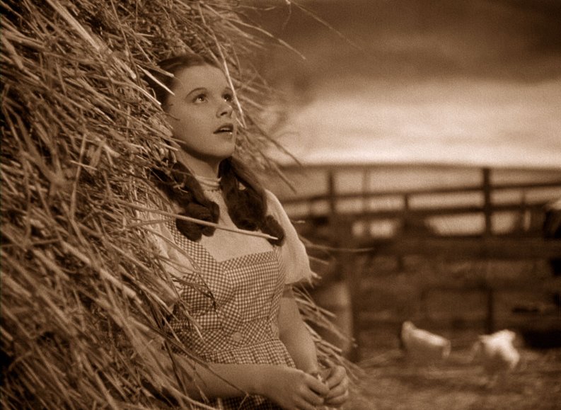 Selbst wenn man DER ZAUBERER VON OZ noch nicht kennt, ein Lied aus dem Musical aus dem Jahr 1939 kennt wirklich jeder: Over the rainbow. Trotz unzähliger Coverversionen über die Jahre hat das melancholische Lied nichts von seiner Magie verloren. Gesungen wird das Lied von dem Mädchen Dorothy (Judy Garland), die zusammen mit ihrer Tante Emily und ihrem Onkel Henry auf einer Farm in Kansas lebt. Mit den drei Farmarbeitern Hunk (Ray Bolger), Hickory (Jack Haley) und Zecke (Bert Lahr) ist sie befreundet. Dorothy fühlt sich unverstanden und die unfreundliche Nachbarin Almira Gulch (Margaret Hamilton) möchte ihr den geliebten Hund Toto wegnehmen, weil sie das Tier für gefährlich hält. Als Dorothy mit ihrem Hund heimlich die Farm verlässt, trifft sie auf den Schausteller Professor Marvel, der ihr ein schlechtes Gewissen macht. Auf dem Rückweg zieht ein Sturm auf. Sie schafft es nicht mehr rechtzeitig in den Schutzkeller und flüchtet ins Haus. Kurz darauf wird sie von einem Fenster am Kopf getroffen und der Wirbelsturm erfasst das Häuschen und transportiert Dorothy und ihren Hund direkt nach Oz. Dort landet sie direkt auf dem Haus der bösen Hexe des Ostens, die den Zusammenstoß nicht überlebt. Die gute Hexe Glinda (Billie Burke) erscheint und warnt Dorothy vor der bösen Hexe des Westens, die versuchen werde ihre Schwester zu rächen und Dorothy die roten Halbschuhe abzunehmen, die vorher die böse Hexe trug. Dorothy möchte wieder zurück nach Kansas und Glinda gibt an, der Zauberer von Oz könne ihr helfen. Sie müsse nur der gelben Steinstraße bis in die Smaragdstadt folgen. Auf dem Weg dorthin trifft sie auf eine Vogelscheuche (Ray Bolger), die sich einen Verstand wünscht, einen Zinnmann (Jack Haley), der ein Herz haben möchte, und einen ängstlichen Löwen (Bert Lahr), der sich mehr Mut wünscht. Dorothy denkt, der Zauberer könne sicherlich auch ihnen helfen und nimmt sie mit. Doch der Zauberer stellt Dorothy und ihren Mitstreitern eine schwierige Aufgabe. Bevor sie ihre Wünsche erfüllt bekommen, sollen sie den Besen der bösen Hexe beschaffen.